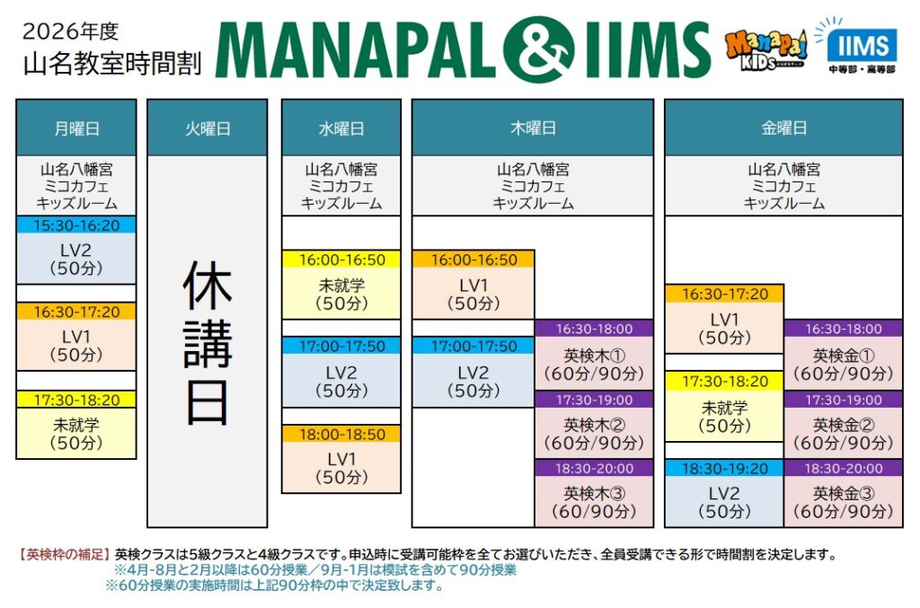 ※【クラス(団体)】の時間割は、ご希望の教室の時間割をご確認ください。